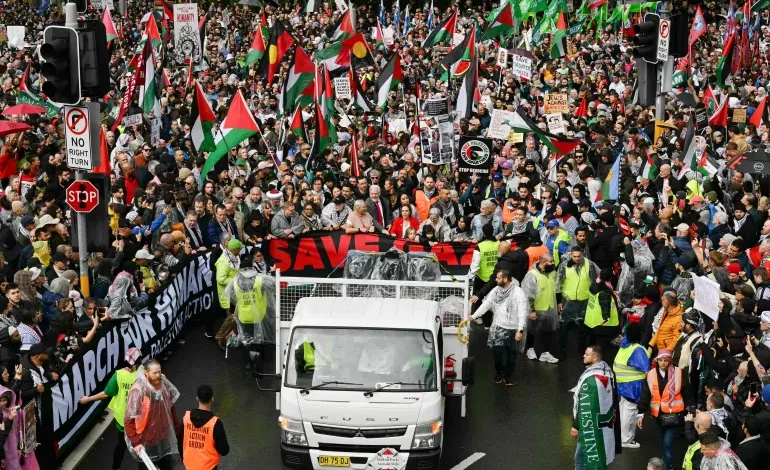 مظاهرة حاشدة بأستراليا تندد بالحرب الإسرائيلية على غزة (الفرنسية)