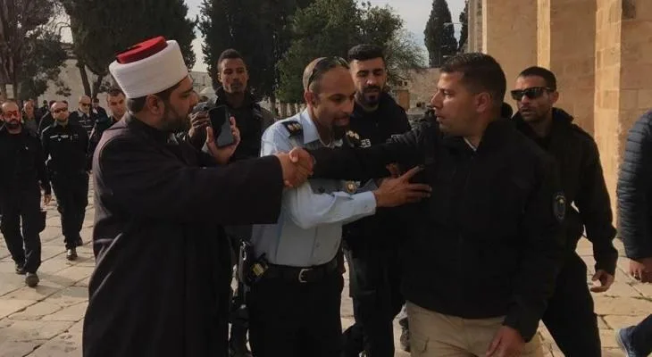 وذكر أحد العاملين في المسجد الأقصى، أن شرطة الاحتلال اعتقلت حارسي الأقصى عرفات نجيب ومحمد الصالحي، وموظف لجنة الإعمار حسام سدر، أثناء تأديتهم عملهم في المسجد.
