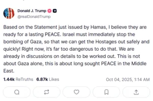 وأكد ترامب في تصريحاته أن قبول حماس للخطة يشير إلى “استعدادها لسلام دائم”، مضيفًا أن نقاشًا يجري بالفعل بشأن تفاصيل الخطة.