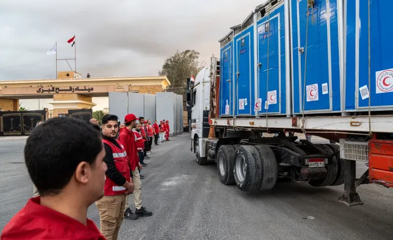 تحرك شاحنات المساعدات استعدادا للدخول إلى قطاع غزة