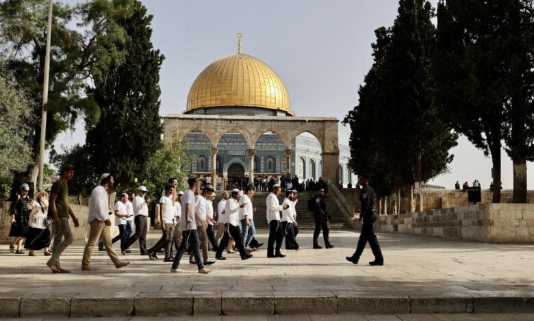 ونشرت شرطة الاحتلال منذ الصباح، وحداتها الخاصة في باحات الأقصى وعند أبوابه، لتأمين الحماية الكاملة لاقتحامات المتطرفين.
