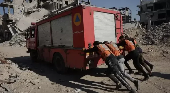 الدفاع المدني في غزة يعلق الاستجابة بإزالة أخطار المباني المتضررة بسبب شح الوقود ونقص المعدات