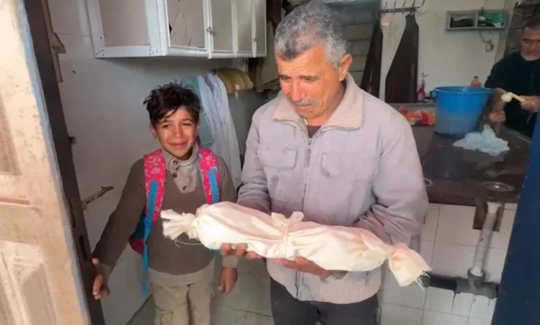 ونظراً إلى تعذر وصول الإسعاف، اضطر الأقرع إلى لفّ طفله ببطانية والتوجه به إلى أقرب مستشفى ميداني من مكان سكنه في مخيم دير البلح وسط القطاع. وأشار الأب إلى أن درجة حرارة جسد الطفل كانت فور وصوله إلى المستشفى أقل من 30 درجة مئوية، ورغم ارتفاعها قليلاً مع الإسعافات الأولية ومحاولة التدفئة، إلا أن الوضع بقي حرجاً. وفي وقت لاحق، نُقل الطفل إلى مستشفى “شهداء الأقصى” لتلقي الرعاية اللازمة، إلا أنه فارق الحياة بعد ساعات متأثراً بالبرد.