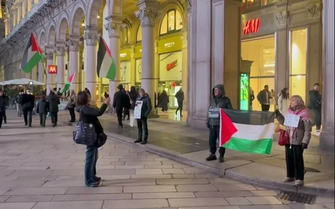 وتجمع عدد من المحتجين في ساحة “بيازا ديل دومو”، حيث رفعوا الأعلام الفلسطينية تزامنا مع إقامة مراسم استقبال الشعلة الأولمبية في الساحة نفسها، في مشهد لافت جذب أنظار الحاضرين.