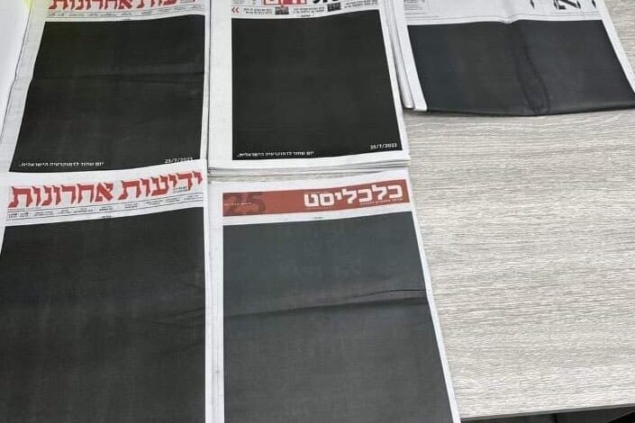 فوجئ الإسرائيليون، صباح الثلاثاء، بطباعة الصحف العبرية الكبرى، لصفحاتها الأولى باللون الأسود بدون أي كتابة أخرى.